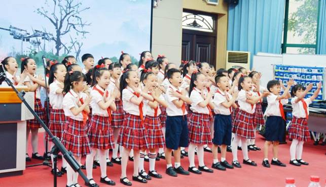 洪山实验外国语小学“云朵儿”童声合唱团的同学们合唱了歌曲《小园》和《小池》,他们不仅展示了层层递进的合唱和步步变换的队形,还在歌词中唱出了新时代的希望“小小的希望,晨曦中待放,一同沐浴和风细雨陪伴它生长……”。