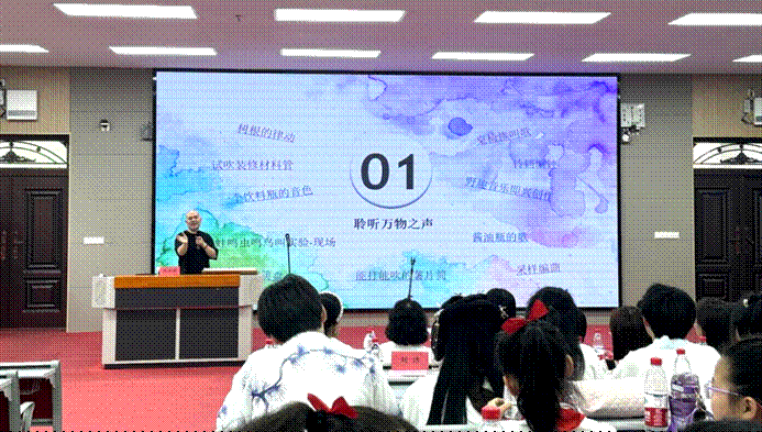 华中师大民进委员会会员、音乐学院副教授赵洪啸老师将其未能在创意室展示的创意乐器带来了活动现场,为同学们展示了“万物”之音。赵老师向大家详细介绍了他的自制乐器并进行演示,用空瓶吹出葫芦丝声般的《爱丽丝》、用空玻璃瓶敲出《小毛驴》、用自制陶笛为同学们吹奏《千与千寻》和《天空之城》。现场人员无不沉浸其中,充分感受音乐的力量和世间万物的奇异。