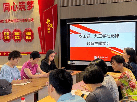 为深入贯彻习近平总书记在同党外人士共迎新春座谈会上的讲话精神,认真贯彻落实中央统战部、省委统战部有关支持高校各民主党派、无党派人士开展纪律教育通知要求。6月21日,华中师范大学农工党、九三学社在南湖综合楼党派活动中心会议室开展纪律教育学习活动。会议由农工党华中师范大学委员会主委张屹教授主持。