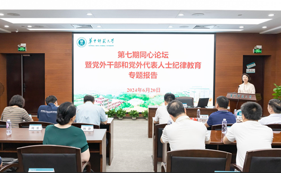 为进一步加强学校党外干部和党外人士的纪律建设,推动学习教育走深走实,6月20日,学校第七期同心论坛暨党外干部和党外代表人士纪律学习教育专题报告会在行政楼二楼会议室举行。校党委副书记、纪委书记刘继文作专题辅导报告。学校各民主党派和统战团体班子成员、部分党外干部和党外代表人士以及党委统战部、机关党委党支部全体党员参会。