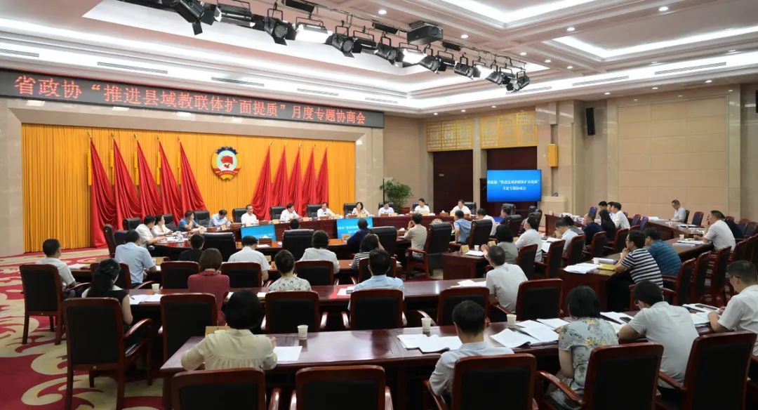 9月19日上午,省政协召开月度专题协商会,聚焦“推进县域教联体扩面提质”协商建言。省政协副主席张维国主持并讲话。省政协副秘书长、民盟湖北省委专职副主委朱梅,省政协常委、民盟省委教育专委会主任左明章,省政协委员、民盟武汉大学委员会主委郭鹏参加会议。