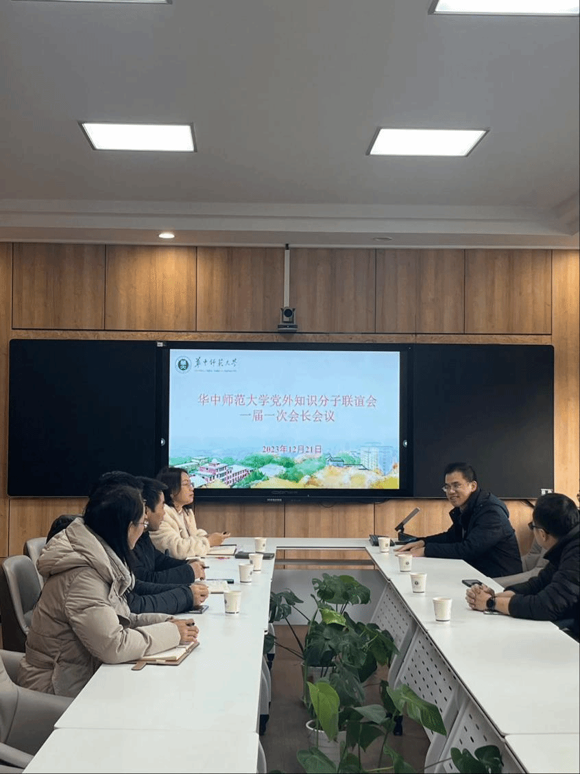 (通讯员 王琳)2023年12月21日下午16:30,在六号楼三楼323会议室召开华中师范大学党外知识分子联谊会一届一次会长会议,华师知联会会长周远扬,常务副会长周凤华,副会长冯国强、秦广友,副秘书长张川、谢志鹏出席,党委统战部邓果老师列席。会议由周远扬会长主持。