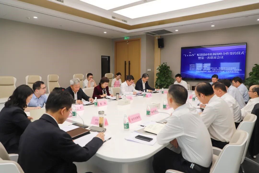 9月30日上午,民革湖北省委会“1×4+N”赋能协同机制战略合作签约仪式暨第一次联席会议在武汉中碳登大厦成功举行。湖北省政协副主席、民革湖北省委会主委王红玲出席会议并讲话。会议由民革湖北省委会副主委、中国地质大学(武汉)教授丁华锋主持。