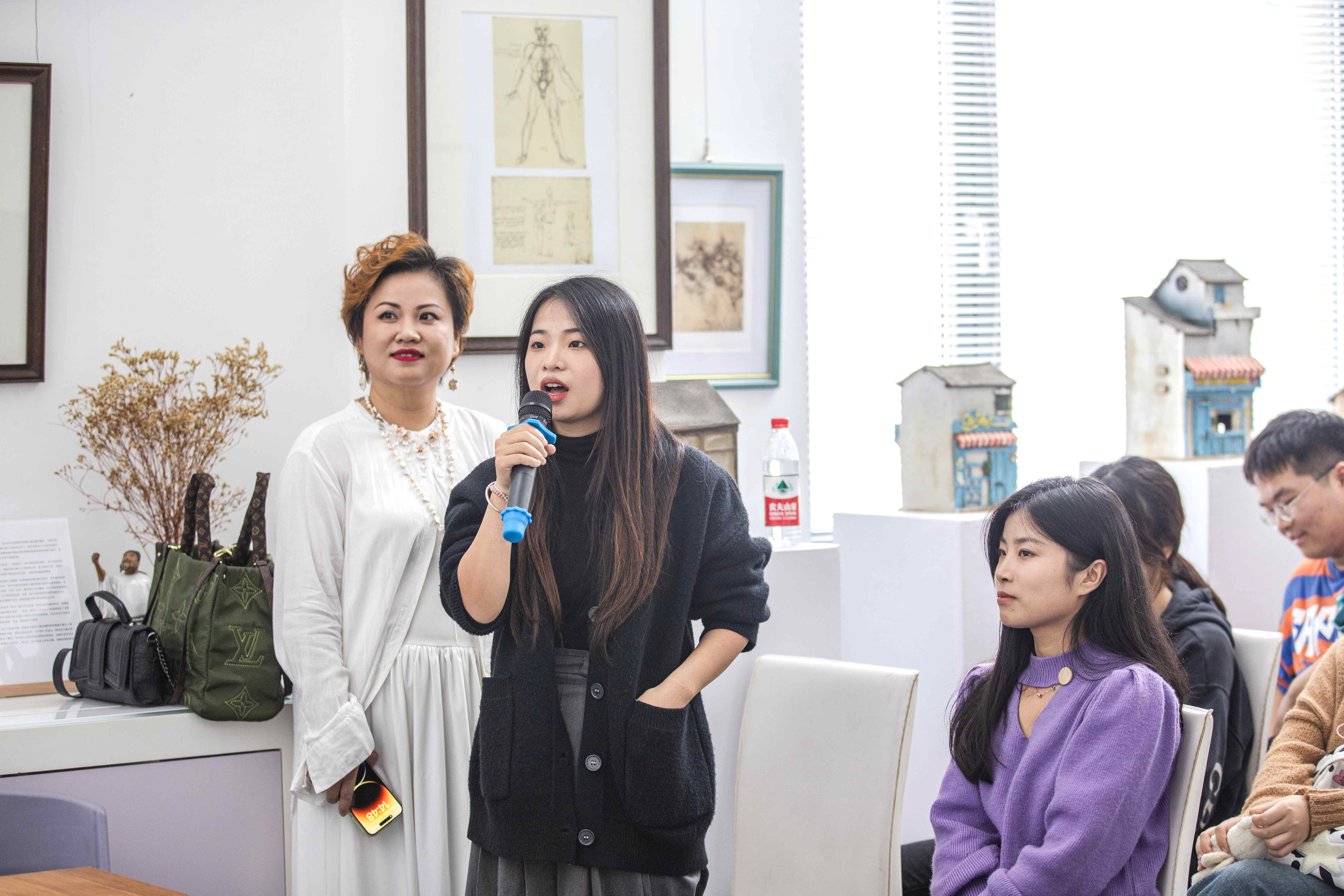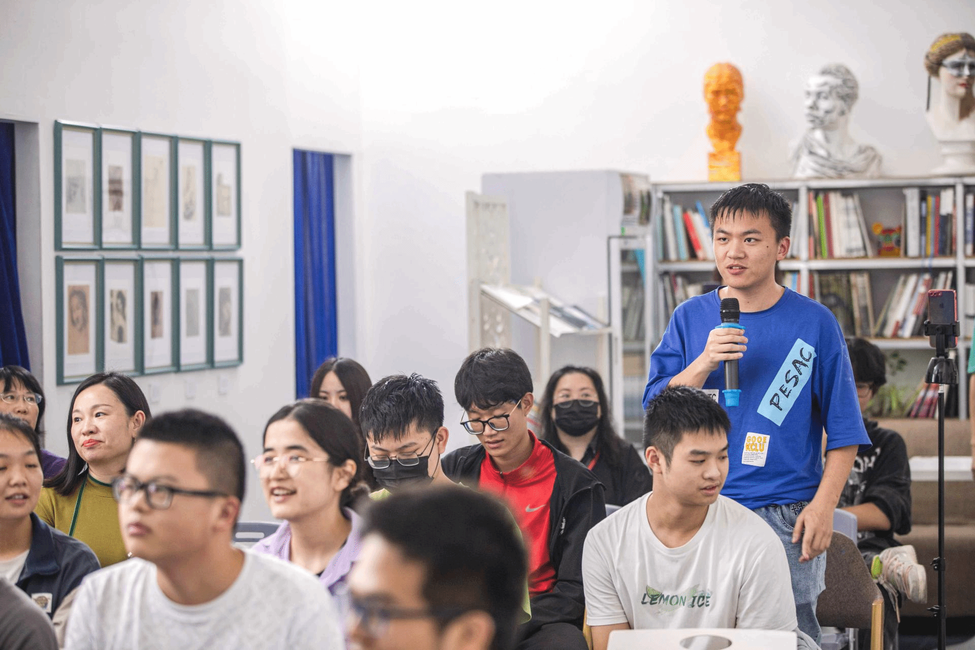 宣讲结束后,楚上艺术馆卓霜主任带领现场的同学们参观了《诗情画意——当李白遇见达芬奇》画展,一一为同学们介绍了达·芬奇的一系列手稿,同学们穿梭其中,切身体验“沉浸式艺术教学”。